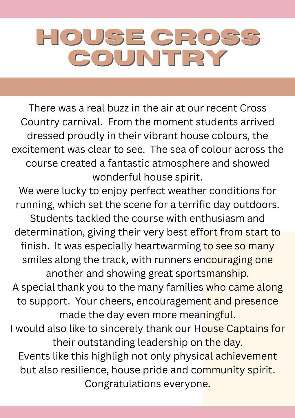 | Friday 29th May | House Athletics Year 3-6 Landy Field |