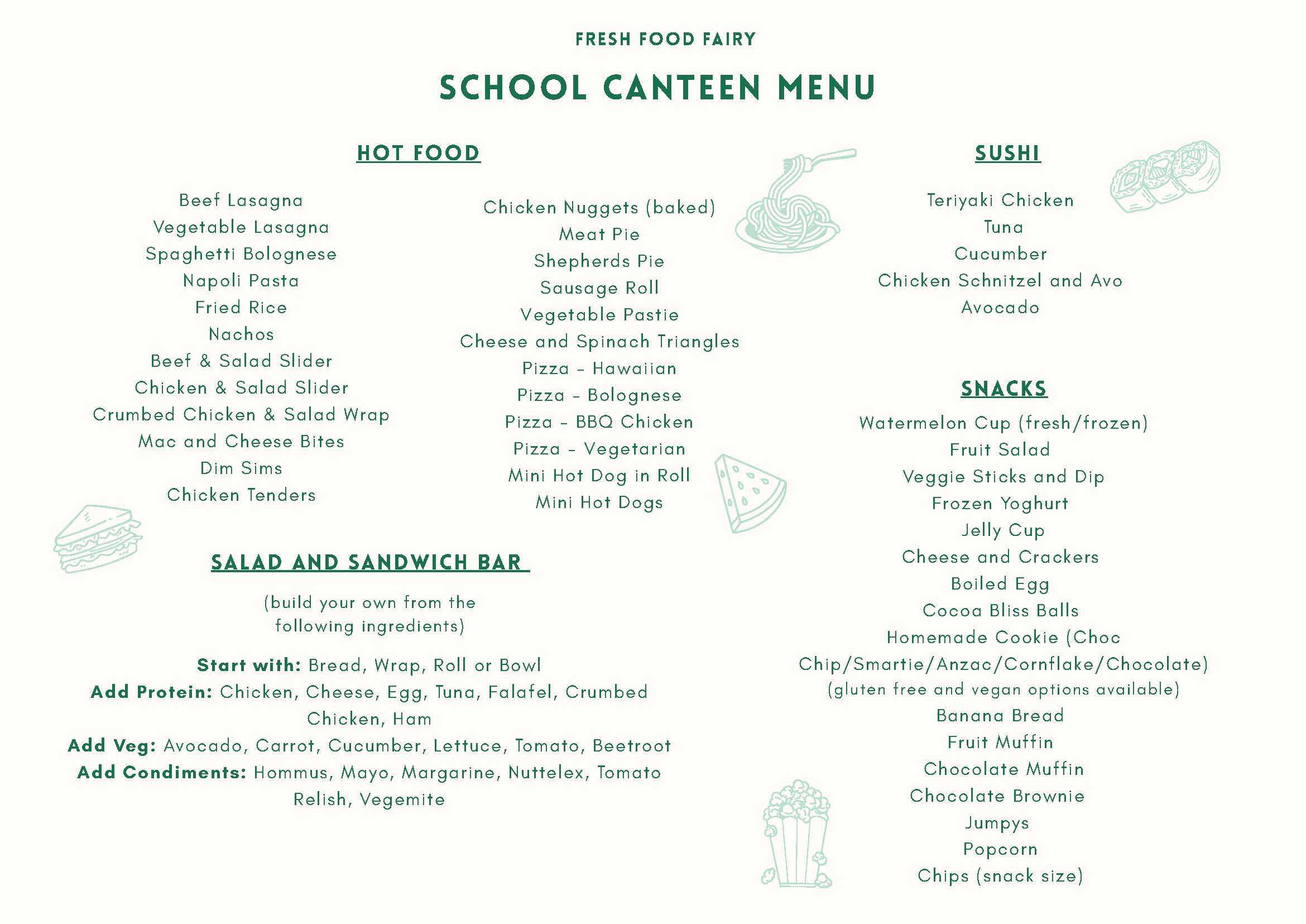Canteen will be available from Monday 9th February. Orders available Monday, Wednesday & Friday.