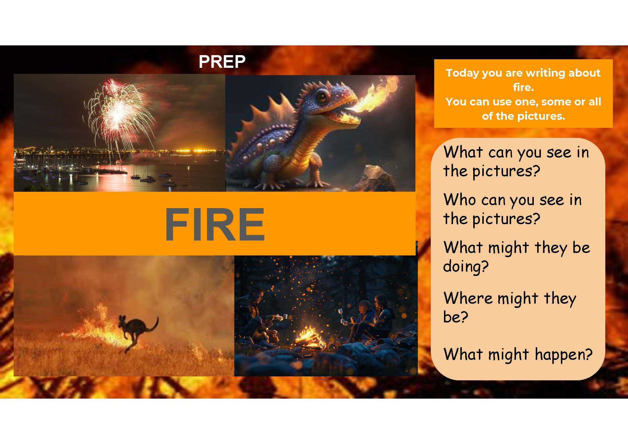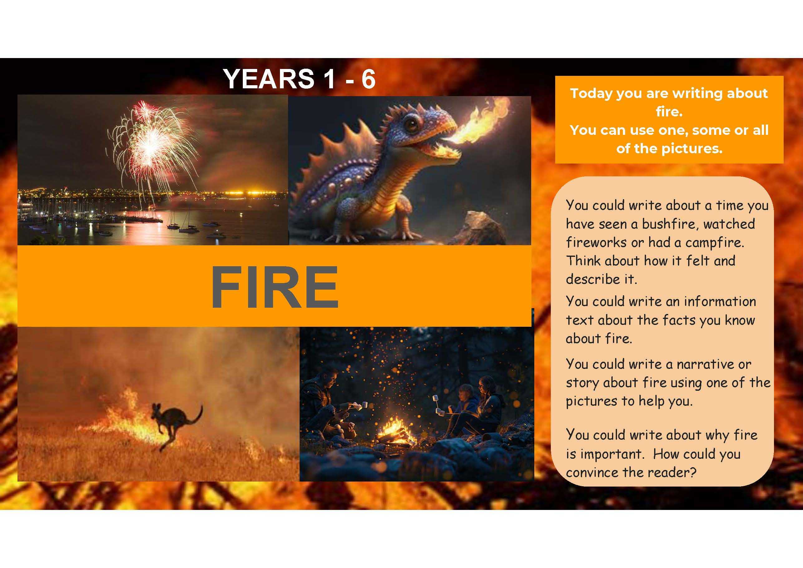 The Big Write prompt for Term 3 is Fire. Students from all year levels will complete their Big Write in week 3. We encourage you to have a conversation with your child about what they might write about.